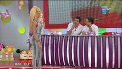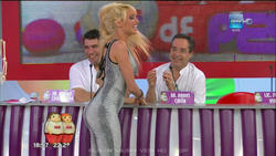 Victoria Xipolitakis vistiendo un enterito animal print en Cuestion de Peso. Video en HD.
